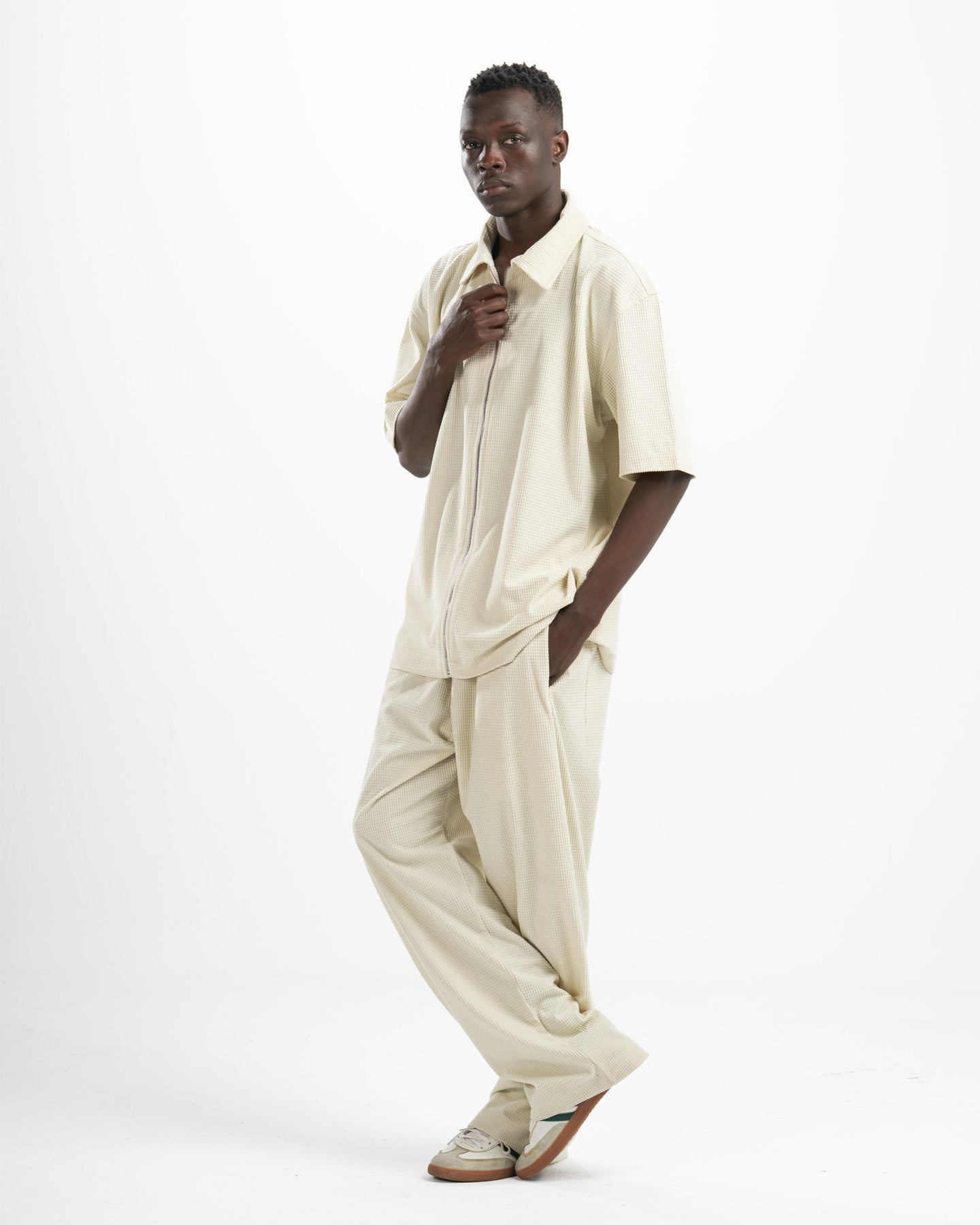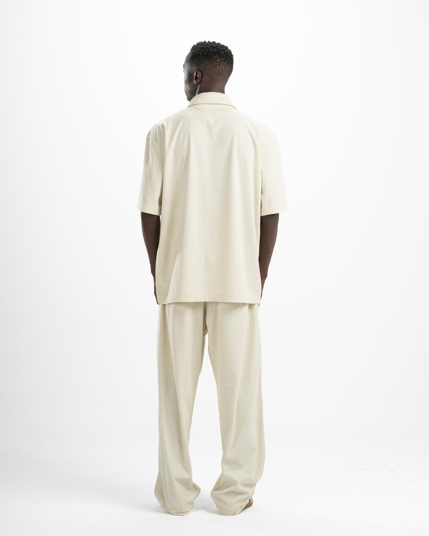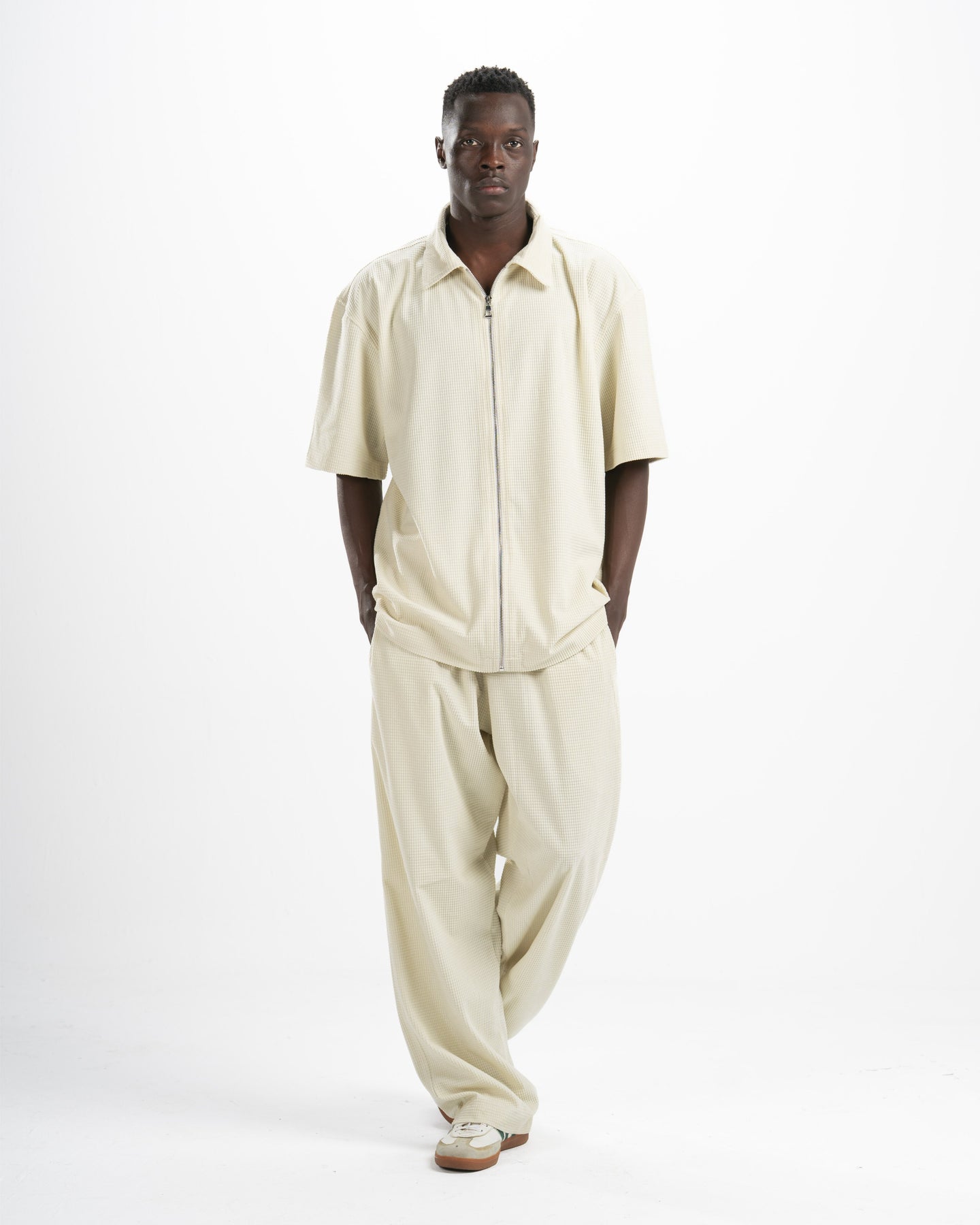 The Cream Waffle Shirt is cut in a relaxed fit with dropped shoulders and short sleeves — designed to layer or stand alone.