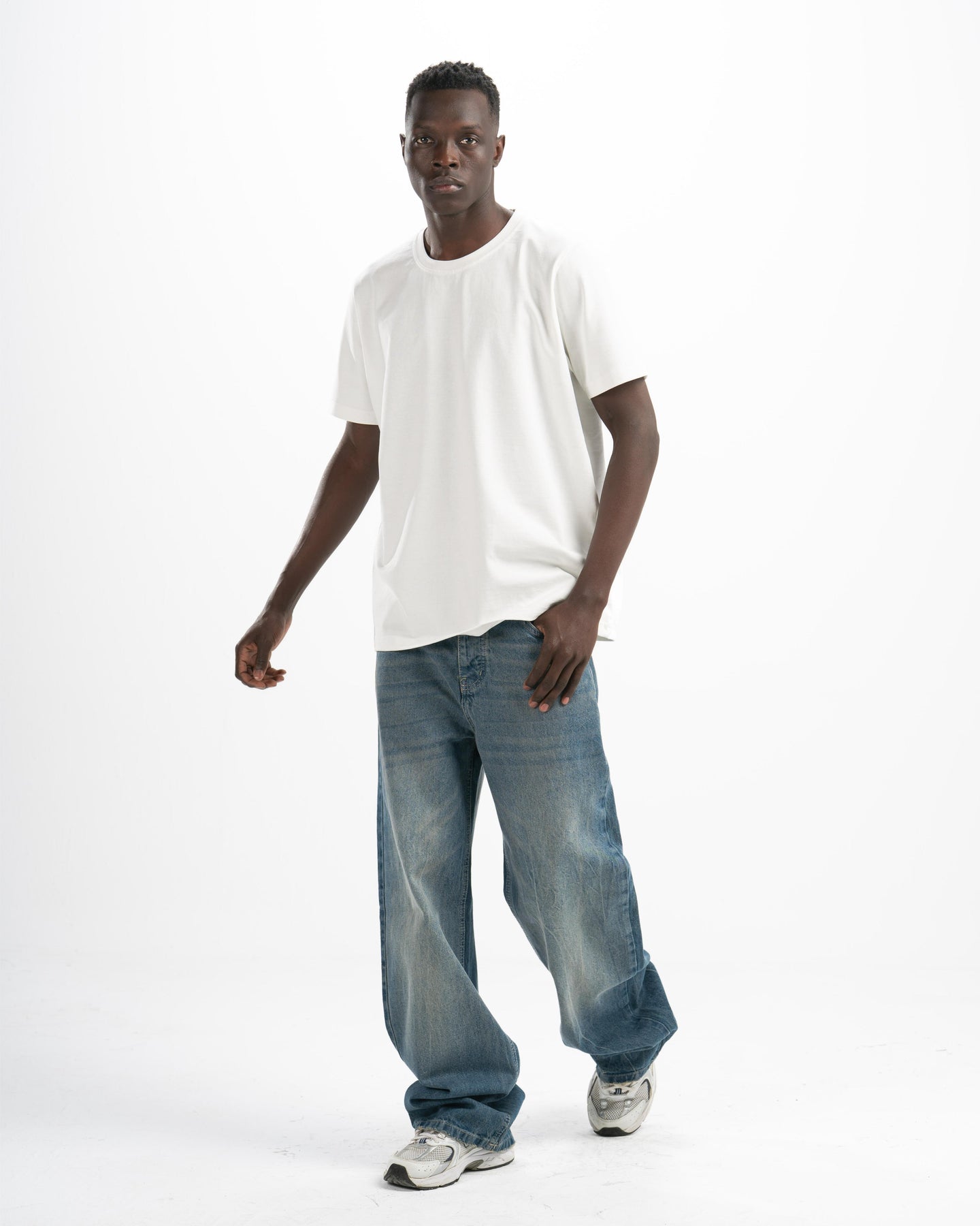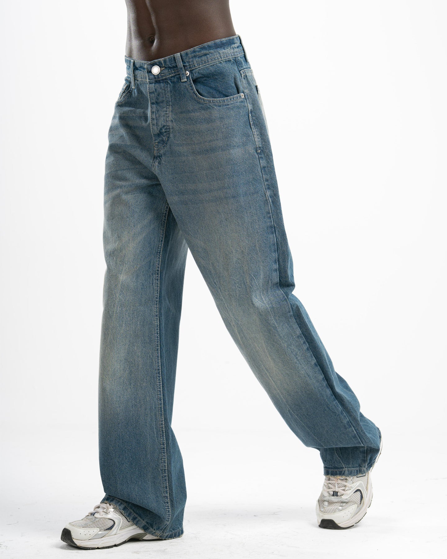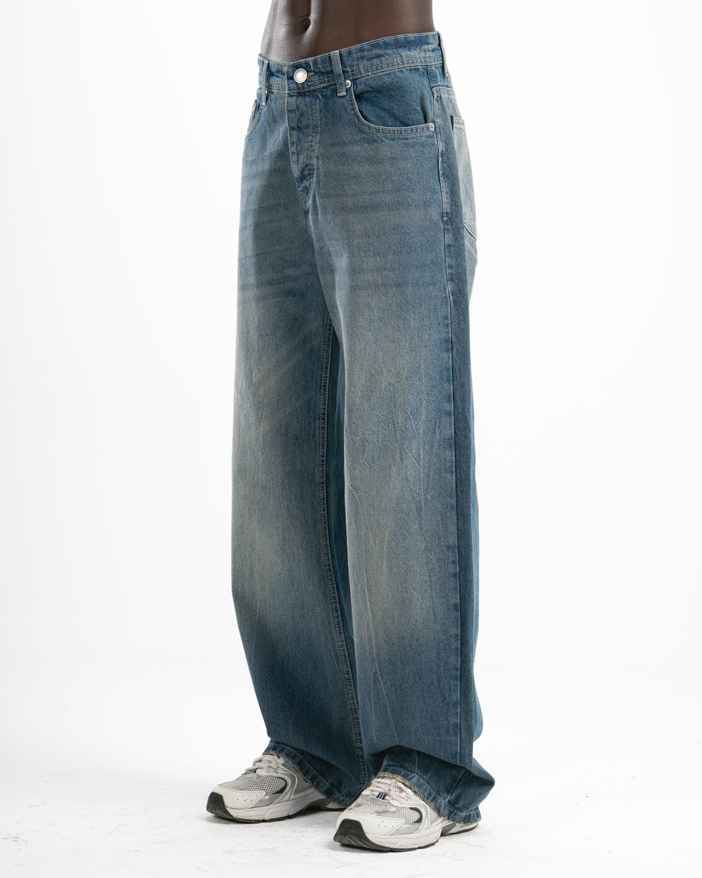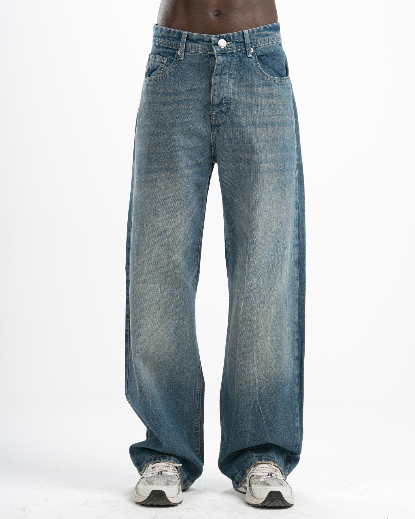 The fit that speaks before you do. Fade-washed vintage denim cut extra wide — relaxed through the hip, wide through the leg, clean enough to wear anywhere. This is the jean that makes the outfit.