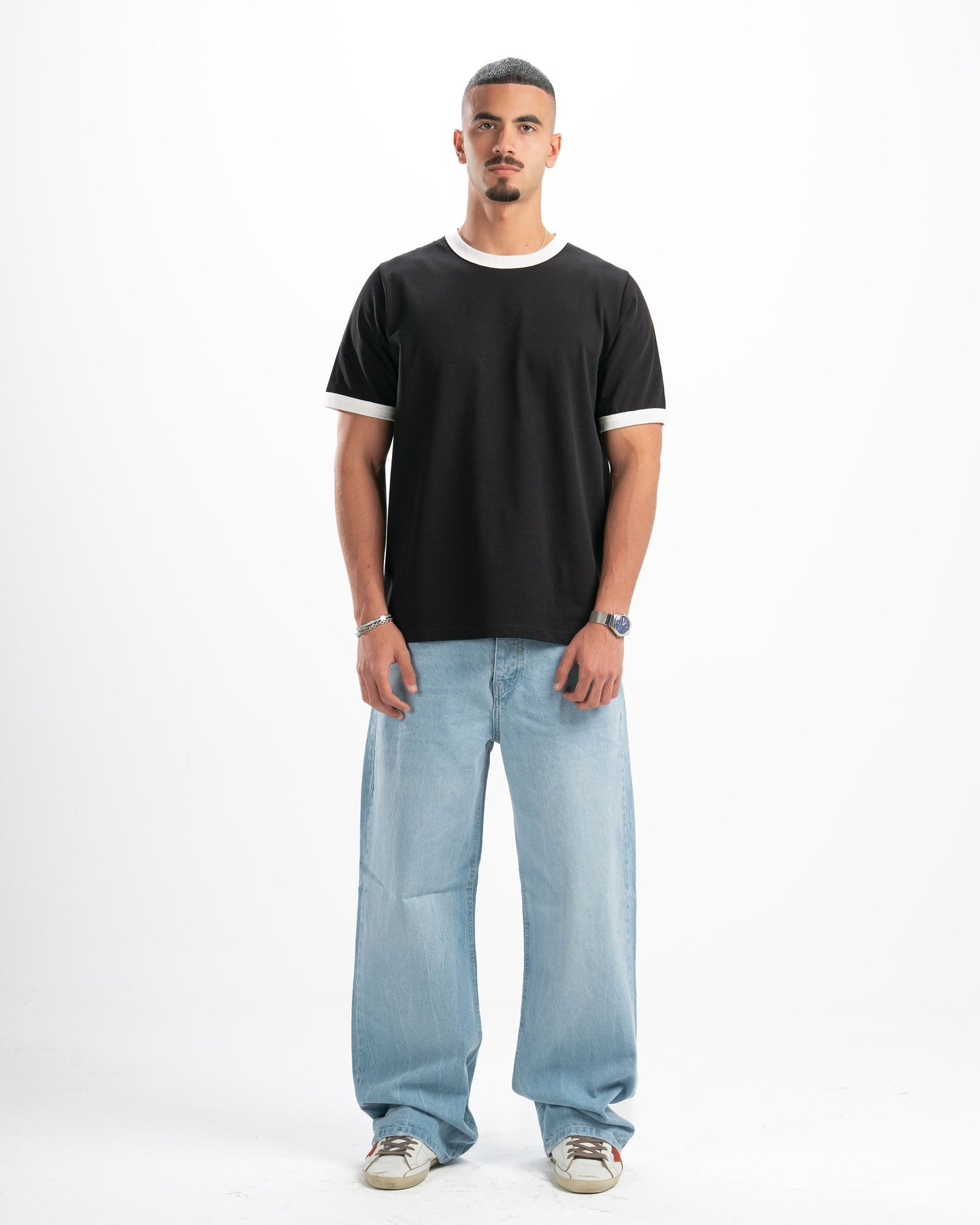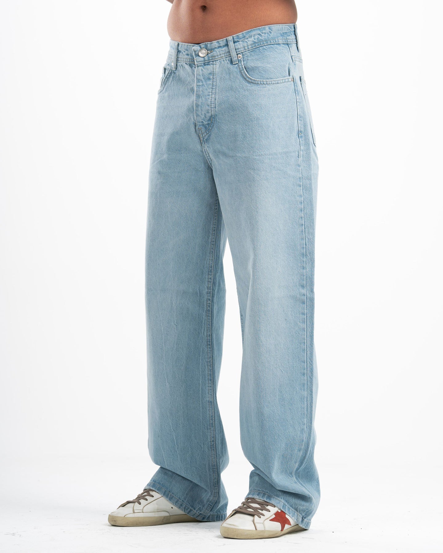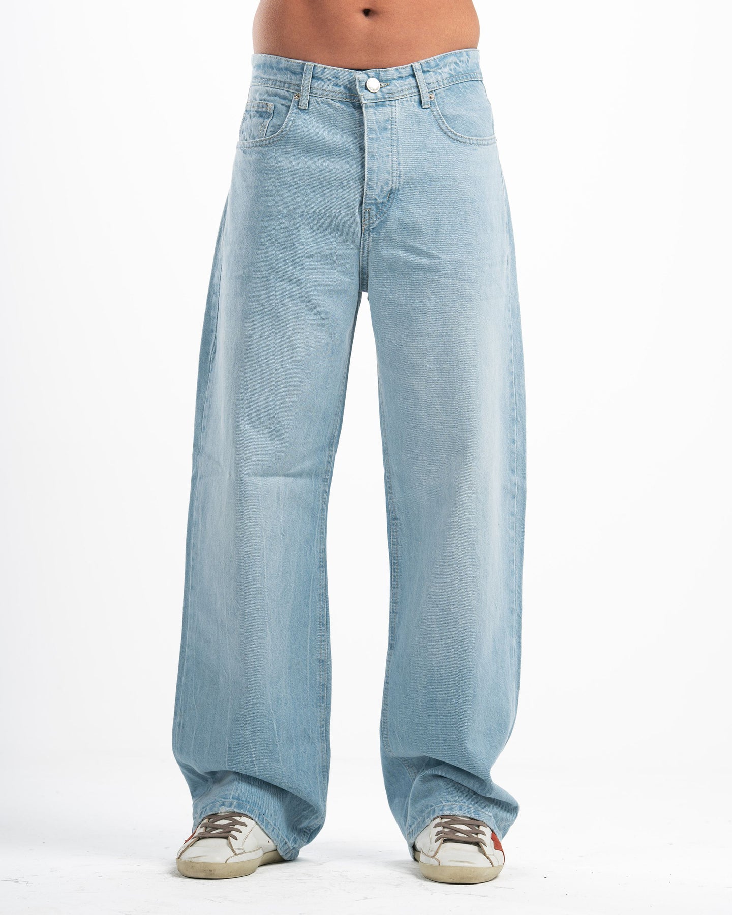 The fit that speaks before you do. Cloud-washed vintage denim cut extra wide — relaxed through the hip, wide through the leg, clean enough to wear anywhere. This is the jean that makes the outfit.