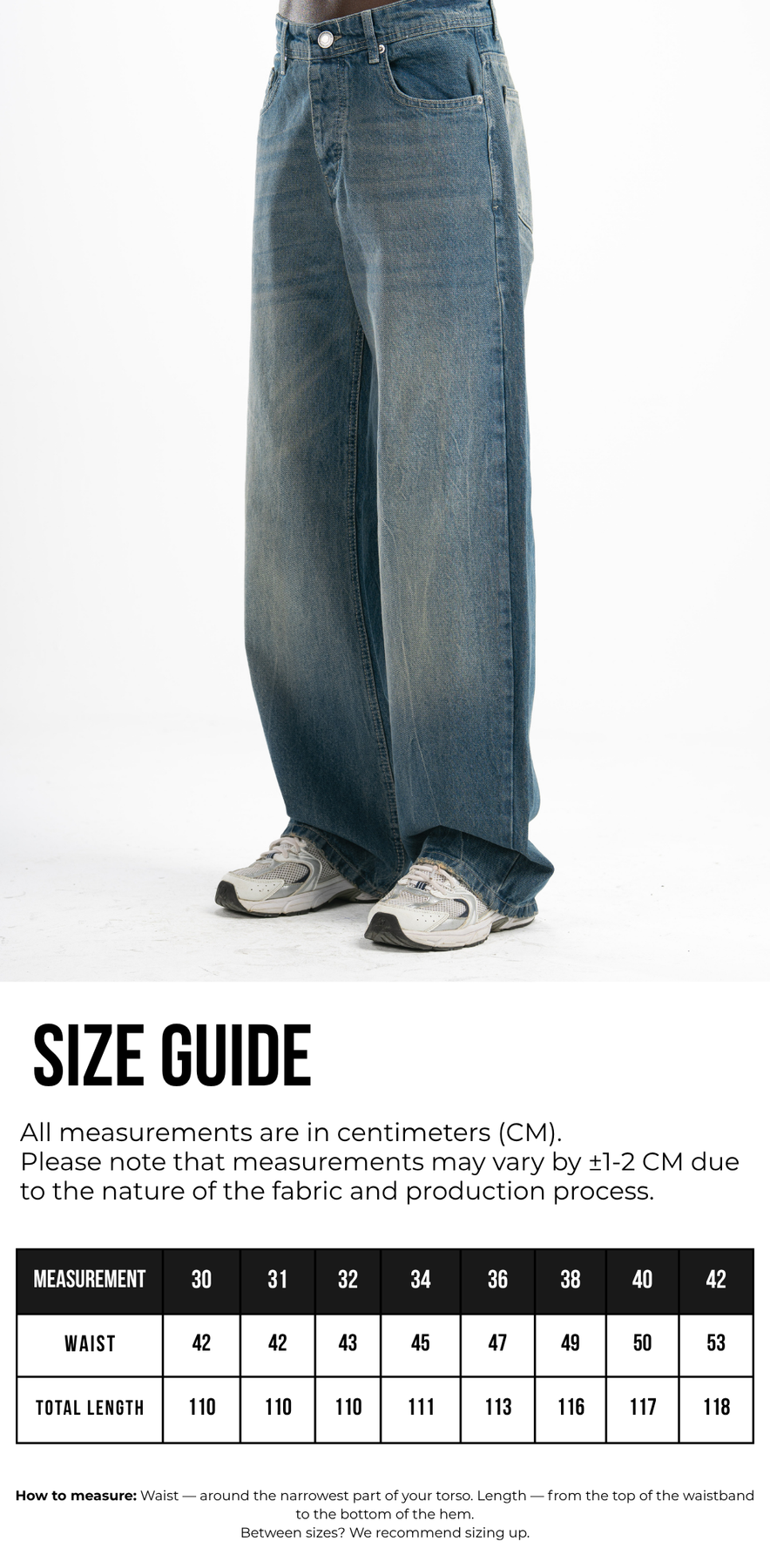 • Fit: Baggy — relaxed hip, wide leg, sits at natural waist