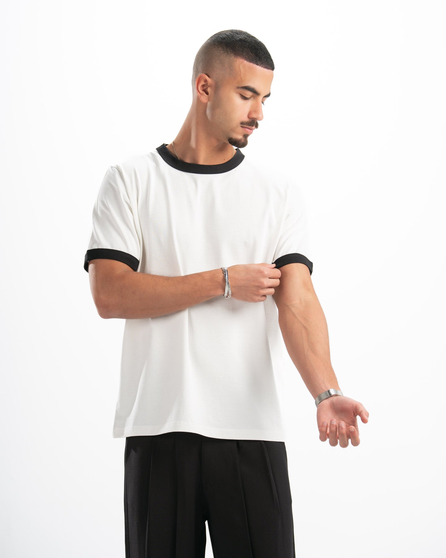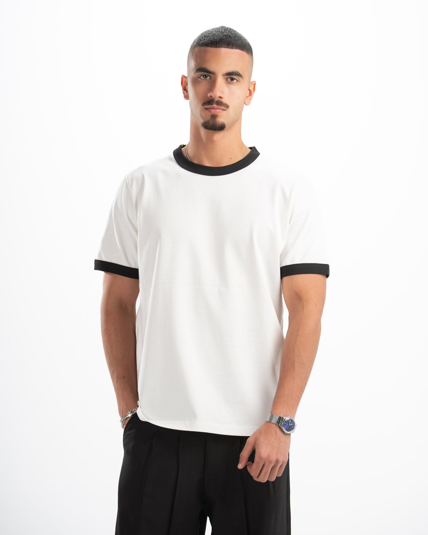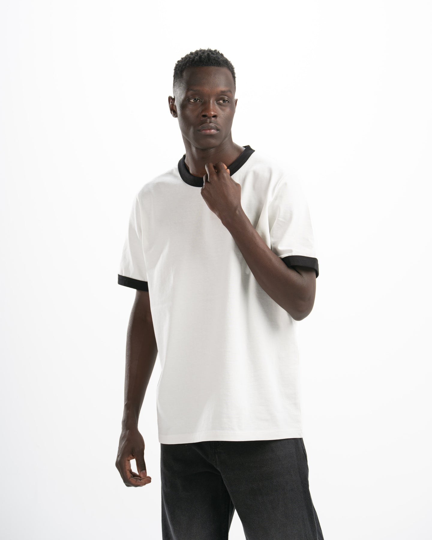 White Ringer Tee — Black